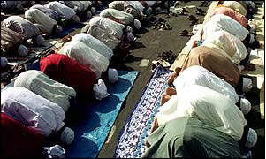 Many Muslims do not adhere to the daily practice (requirements) of Islam. Friday is the more important day of worship and many Muslims may attend Mosques that day. Some break from daily activities, like work, to face Mecca at the appointed hours, kneel on their prayer-rug and from memory repeat words many do not even understand. Pictures of such prostration have been shown of gatherings in France and New Yor